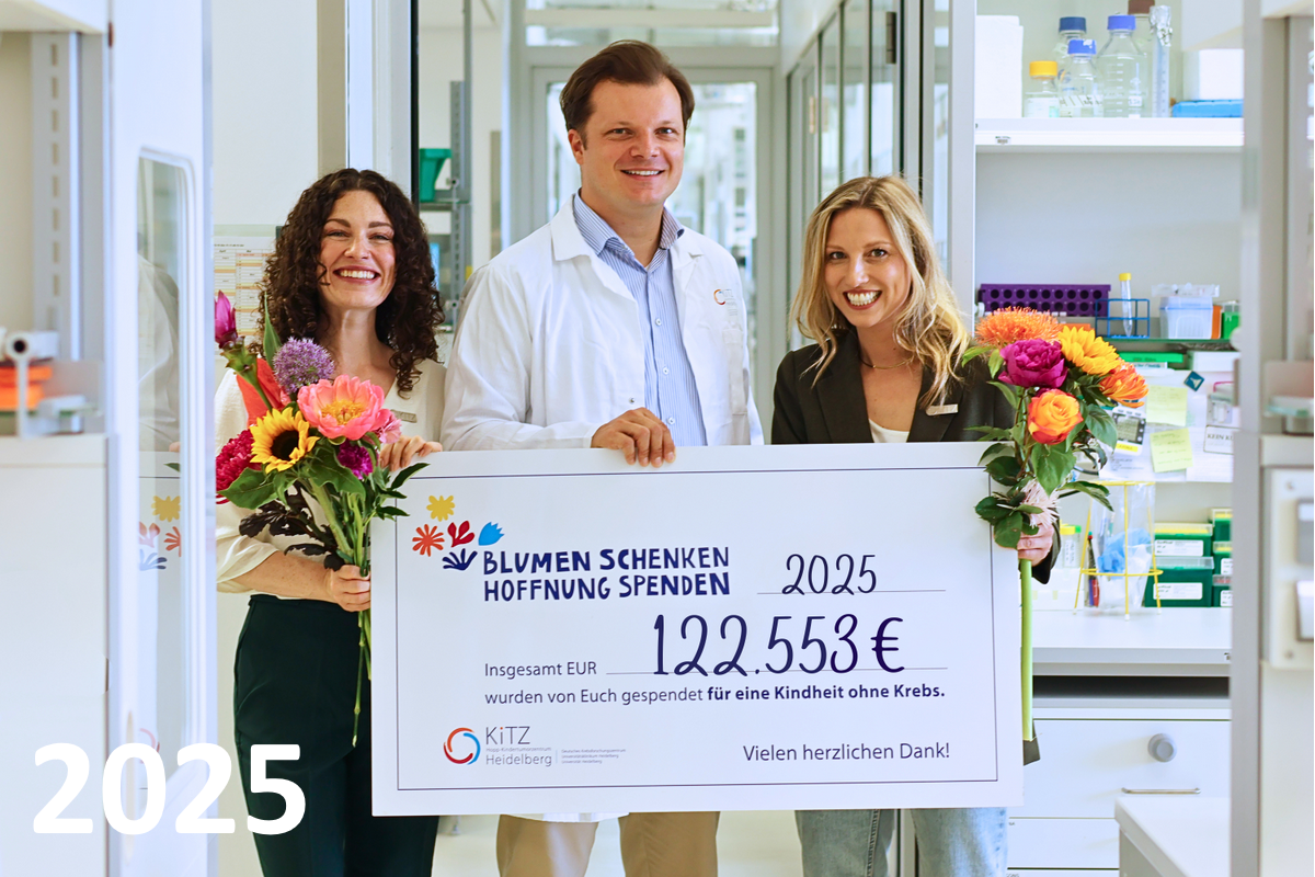 2018 fand mit der Rose der Hoffnung die erste Blumenaktion am und durch das KiTZ statt. Seitdem hat sich die Verbindung von Blumen und dem KiTZ als junge Tradition etabliert, immer mit dem Ziel, auf die dringend notwendige Forschung in der Kinderonkologie aufmerksam zu machen und dafür Spenden zu sammeln.
