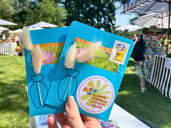 Der Landesverband Hessen/Thüringen des Fachverbands Deutscher Floristen e.V./FDF dachte sich zu ihrem diesjährigen Auszubildenden-Wettbewerb am 29. August 2024 etwas ganz Besonderes aus: Jedes Jahr unterstützt der FDF und all seine Landesverbände die KiTZ-Spendenkampagne „Blumen schenken. Hoffnung spenden.“. Nun startete der Verband eine eigene Folgeaktion, um bei Florist-Kolleginnen und -Kollegen mehr Aufmerksamkeit für die jährliche Blumenkampagne zu erreichen und Spenden für die Kinderkrebsforschung am KiTZ zu sammeln. So verkaufte der FDF-Landesverband Hessen/Thüringen beim Auszubildenden-Wettbewerb auf der Landpartie im Schloss Büdingen Blumensamen zugunsten des KiTZ unter dem Motto „Pflanze Blumen in deinen Garten und Hoffnung in Herzen“. Nach einem erfolgreichen Wettbewerbstag konnte der FDF 120 € im Spendenglas sammeln, die nun dem KiTZ zu Gute kommen.
