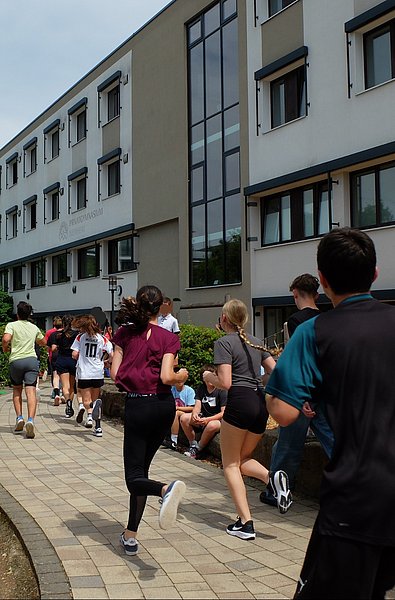 Am 21. Juni fand der jährliche Spendenlauf im Rahmen des Sommerfestes am Privatgymnasium Weinheim (PGW) statt. Das Ziel des Spendenlaufs ist es, möglichst viele Runden um das Schulgebäude zu schaffen, um mithilfe der gesamten Schulgemeinschaft Spenden zu sammeln. Daher suchen sich die Schülerinnen und Schüler vorab private Sponsoren, zum Beispiel ihre Eltern und Großeltern, die ihr Vorhaben unterstützen und pro gelaufene Runde einen festgelegten Betrag spenden. Die Gelder werden am Ende von der SMV gesammelt und für einen guten Zweck gespendet. „Die Mitglieder der SMV hatten bereits im letzten Jahr nach Organisationen im Umfeld von Weinheim gesucht, die wir mit dieser Spendenaktion unterstützen können. Dabei wurden wir auf das KiTZ aufmerksam. Die Schülerinnen und Schüler sind selbst im Alter der Kinder, die am KiTZ betreut werden. Das hat sie sehr betroffen gemacht und sie entschieden sich, dass ein Teil der Spendengelder aus dem Spendenlauf dem KiTZ zugutekommen soll“, erklärt Frau Schimmel, Verbindungslehrerin der SMV. Bereits im letzten Jahr hatten die Schülerinnen und Schüler eine großartige Summe von 5.637 Euro erlaufen und an das KiTZ gespendet. Dieses Jahr konnten sie diese Summe sogar übertreffen und 6.400 Euro für das KiTZ sammeln. Damit haben die Schülerinnen und Schülern des PGW bereits über 12.000 Euro Spenden erlaufen zur Unterstützung der Kinderkrebsforschung sowie der Versorgung der Patientinnen und Patienten am KiTZ.
